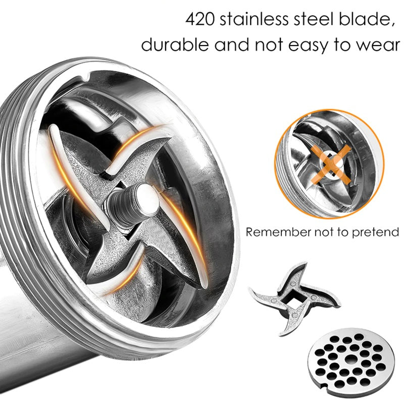 Color: silver Material: aluminum alloy Package list: 1 x meat grinder main part 1 x worm 1 x handle 1 x nut 1 x plate 1 x cutting knife 1...